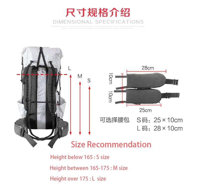 3F UL GEAR 35L-45L Ultralight Frameless XPAC & UHMWPE Bags